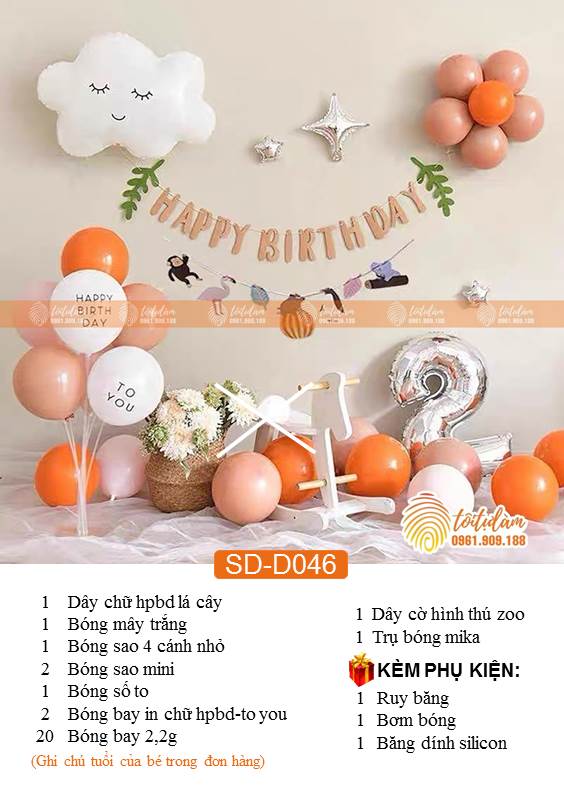 SET BÓNG TRANG TRÍ SINH NHẬT PHONG CÁCH HÀN QUỐC SD-D046
