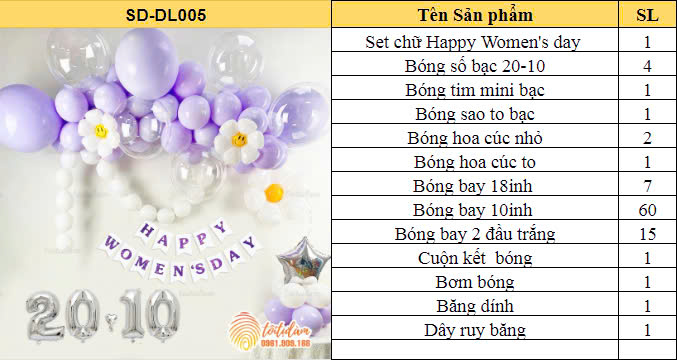 SET BÓNG TRANG TRÍ 20/10 NGÀY PHỤ NỮ VIỆT NAM SD-DL005