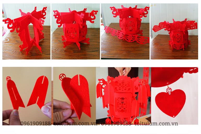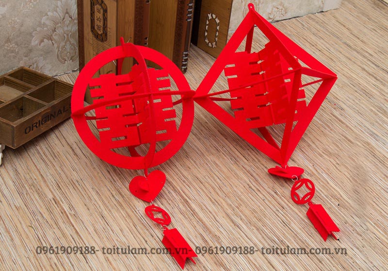 Từng chi tiết đèn lồng đều được làm rất tỉ mỉ mỗi cạnh đều có cắt chữ hỷ xung quanh tạo nên chiếc đèn vô cùng bắt mắt và sáng tạo. Bạn có thể trang trí trước cửa phòng ngủ hoặc treo sát trần nhà để chiếc đèn luôn nổi bật.