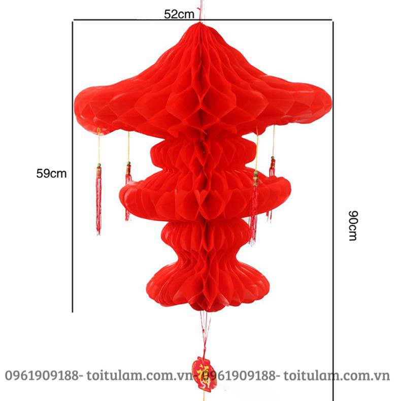 Điểm nhấn của mẫu đèn tổ ong 3 tầng này chính là lỗi thiết kế khác lạ, các đường cong rất bắt mắt cộng thêm dây tua rua khiến chiếc đèn lại khiến người dùng muốn ngắm nhìn lâu hơn.