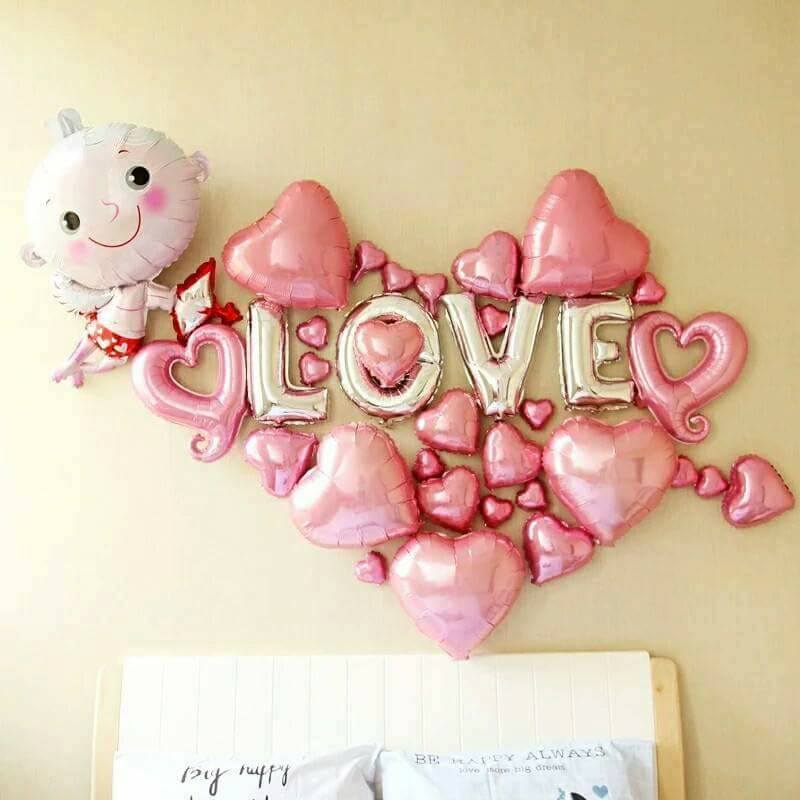 Ngoài set bóng chữ, bạn có thể nhấn nhá thêm một chút bóng rời màu hồng hoặc màu trắng xung quanh. Chẳng cần tiêu tốn quá nhiều thời gian mà bạn vẫn có được một không gian đêm tân hôn như ý với set bóng trang trí phòng cưới theo tone màu trắng.