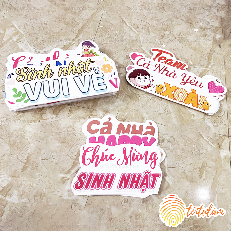Với kinh nghiệm chuyên thiết kế và in ấn đồ phụ kiện trang trí sự kiện nhiều năm nay, thư viện hàng nghìn mẫu có sẵn hoặc thiết kế mới theo yêu cầu của Quý Khách Hàng, Tôi Tự Làm có sẵn máy in và formex gia công sản xuất lấy ngay, luôn mang đến cho Quý Khách Hàng các sản phẩm thiết kế ưng ý nhất, nhiều mức giá tốt nhất cho Khách Hàng lựa chọn phù hợp với nhu cầu.
