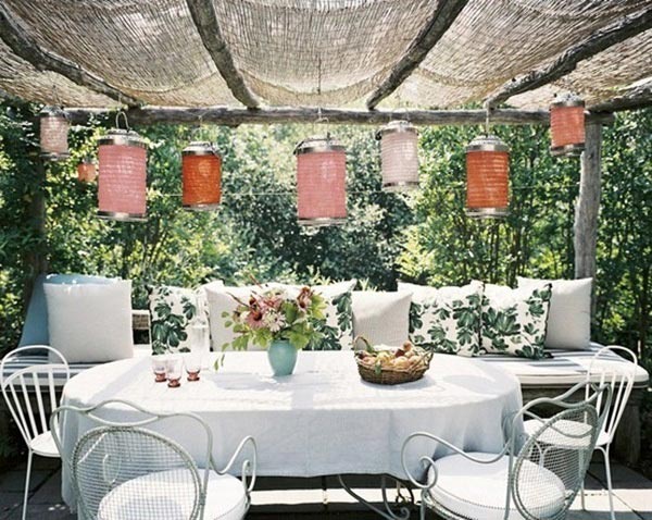 Những chiếc lọ thủy tinh có thể đóng vai trò đắc lực trong việc làm đẹp sân vườn. Rất đơn giản, bạn chỉ cần treo một vài lọ thủy tinh trên bàn ngoài trời, đặt bên trong đó một cây nến và thắp chúng lên khi mọi người ngồi hóng mát hay trò chuyện.