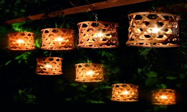 Những chiếc giỏ mây nhỏ nhắn cũng có thể được lắp thêm các bóng đèn để tạo thành chùm đèn độc đáo cho khoảng sân vườn trong nhà bạn.