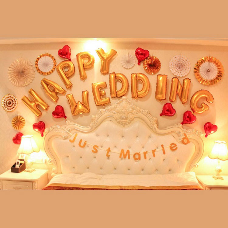 Ngoài ra, bạn cũng có thể sử dụng các loại bóng bay bơm hơi thông thường thả dưới sàn nhà hay trang trí các cánh cửa, giường cưới …