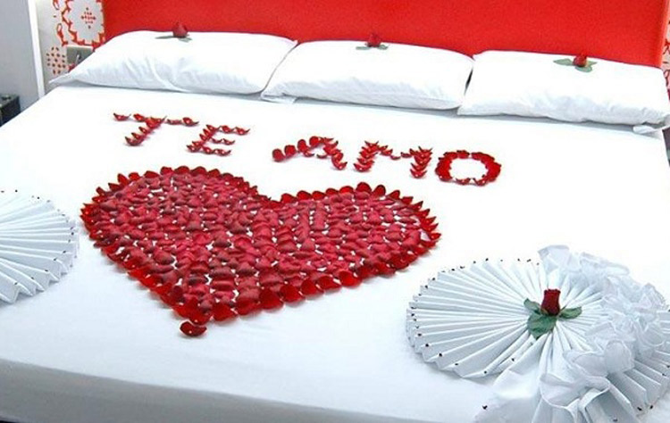 Một phòng cưới đẹp là phòng cưới có chiếc giường cưới hút mắt nhất. Một vài cánh hoa hồng đỏ tươi vô tình “vương vãi” trên ga trải giường trắng thôi cũng đủ khiến người nhìn cảm thấy mê mẩn rồi. Những cánh hoa hồng sẽ thắp sáng lên ngọn lửa tình yêu của đôi uyên ương trong đêm tân hôn. Và chiếc giường cũng có thể trở nên bắt mắt hơn nếu bạn đích thân vẽ lên đó một trái tim yêu đương nồng nàn từ những cánh hồng đỏ thắm. Một chút hương thơm sẽ khiến căn phòng trở nên quyến rũ và thu hút hơn. Mister Lincoln – loài hoa hồng đỏ có hương thơm nhất thế giới sẽ mang đến vẻ đẹp ngọt ngào, cổ điển và cũng đầy khiêu khích cho đôi trẻ trong buổi tối lãng mạn.