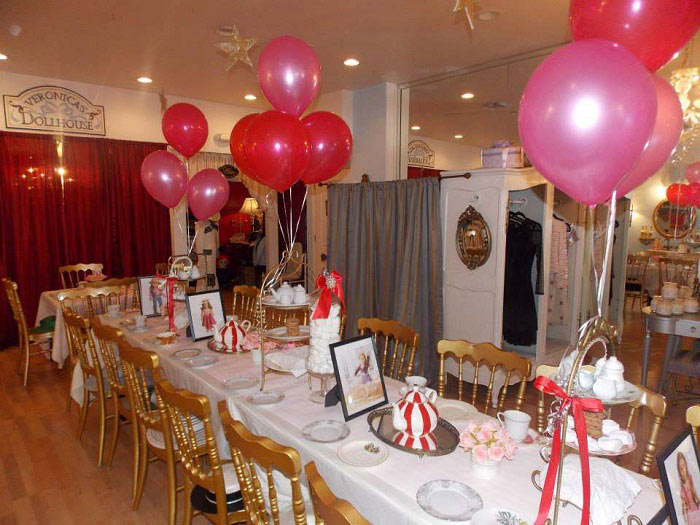 Một phần khác mà bạn không thể bỏ qua chính là bàn tiệc dành cho khách mời. Những chiếc bàn này mang công dụng để ăn uống nhiều hơn nên cách trang trí bàn sinh nhật cũng đơn giản và dễ dàng hơn. Nhưng bạn cũng cần chuẩn bị thật tươm tất: khăn trải bàn, dĩa, thìa, đĩa, dao, khăn giấy và 1 lọ hoa nhỏ hoặc 1 chùm bong bóng để trang trí giữa bàn như thế này.